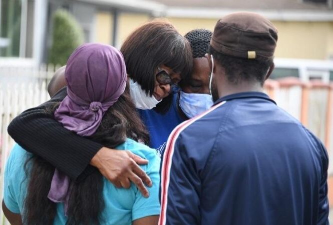 Família de Dijon Kizzee no local onde ele foi morto pela polícia de Los Angeles (Foto: Robyn Beck / AFP )