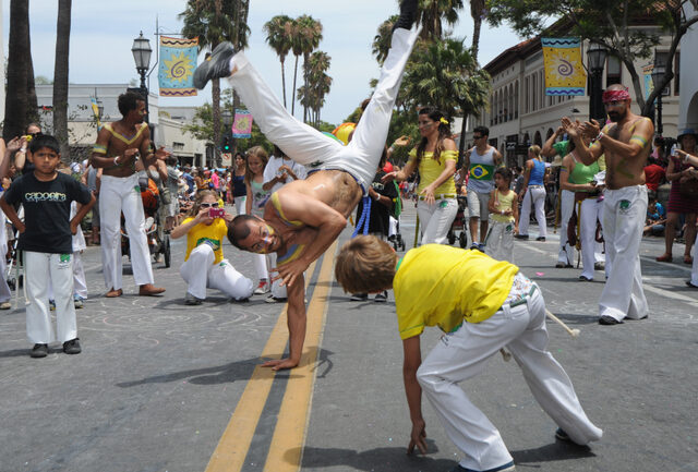 Conhecida como a “Califórnia Riviera”, Santa Bárbara abriga um dos mais tradicionais e vibrantes festivais de rua da costa oeste dos Estados Unidos. O Santa Barbara Summer Solstice Parade celebra arte, diversidade e multiculturalismo desde 1974, reunindo milhares de pessoas todos os anos. Brasileiros têm presença marcante no evento, levando dança, música e ginga ao coração da cidade. Um espetáculo que transforma o início do verão em celebração coletiva.